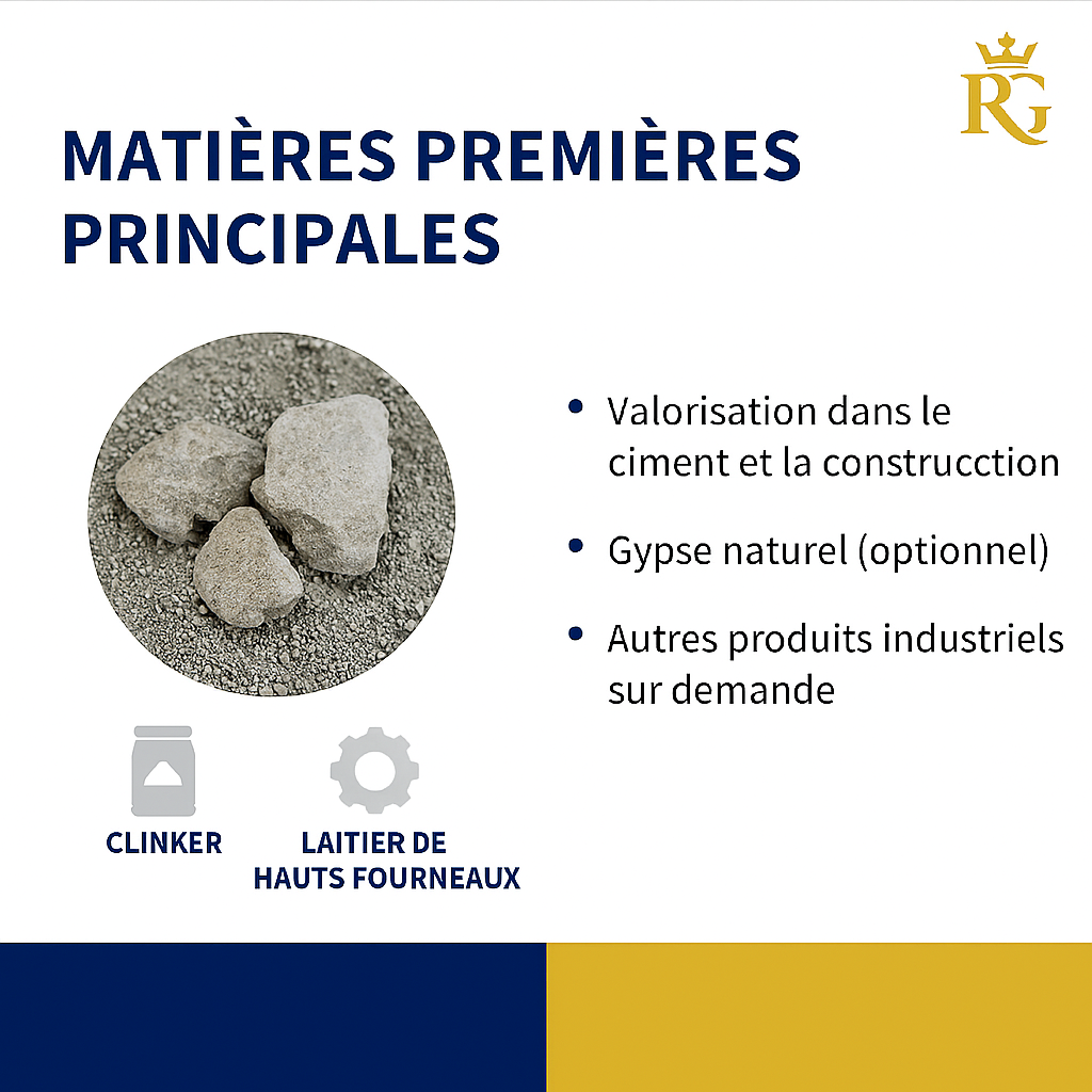 Royal Grace Ltd vous propose du laitier de hauts fourneaux (slag), de la dolomite, du gypse, du clinker ainsi que différents types de ciment.